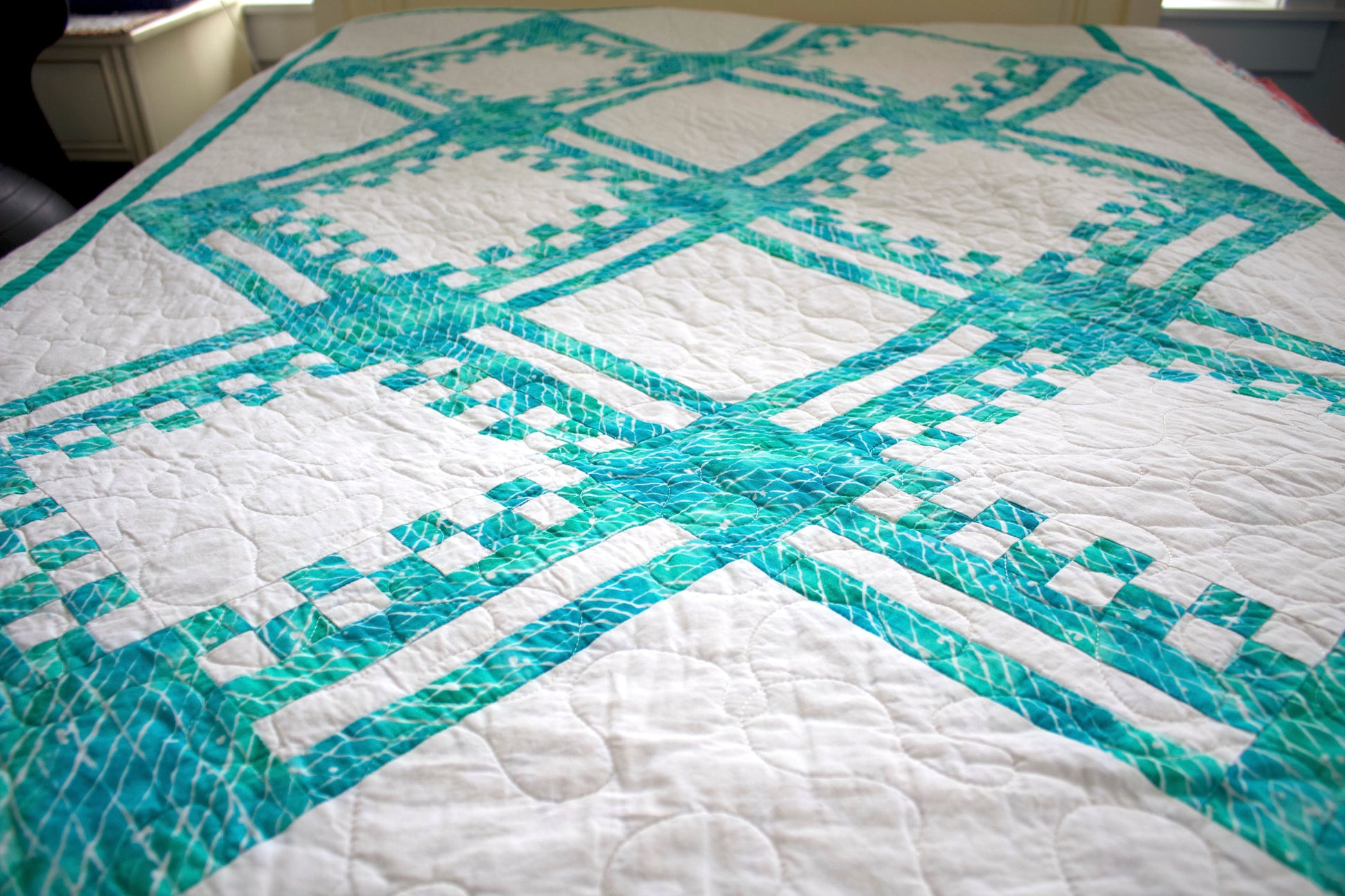 A beautiful quilt with floral binding! A solid peppered cotton backing.